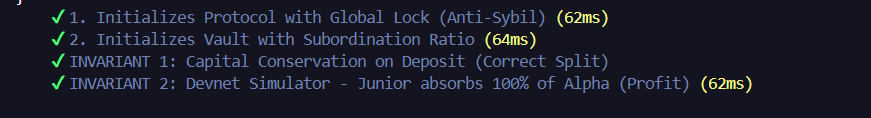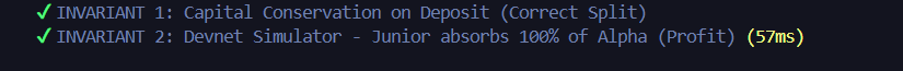 Instead of trusting the frontend UI to calculate yields, 100% of the financial math happens on-chain. The Smart Contract strictly calculates the Senior/Junior splits internally using checked_math, making yield manipulation impossible.